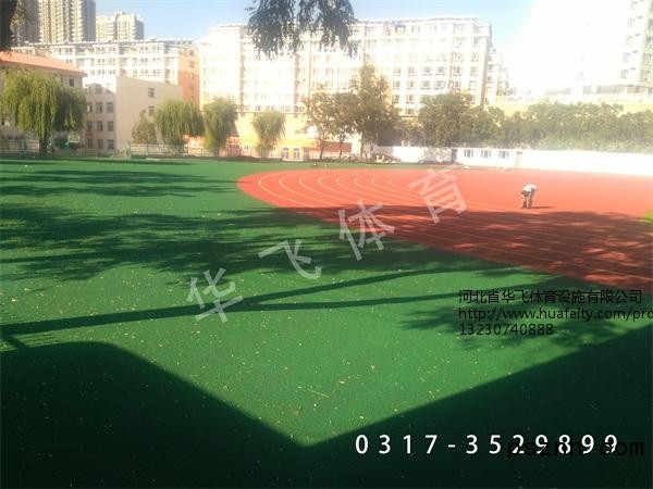 华飞体育透气型塑胶跑道、混合型塑胶跑道平整美观、颜色柔和、压制水分上升,防止起泡、剥离;使用上持久耐磨,可满足学校田径运动员高频率的使用。